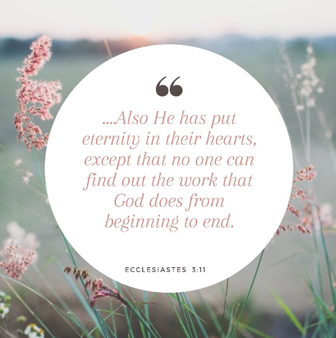 “He has made everything beautiful in its time. Also He has put eternity in their hearts, except that no one can find out the work that God does from beginning to end.”